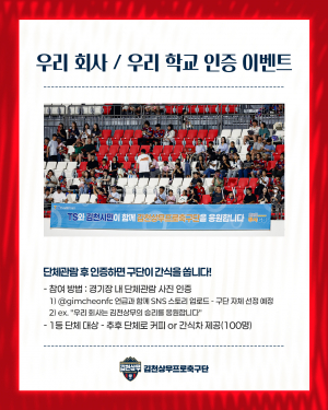 김천상무는 이번 홈경기에 직장인과 학생을 대상으로 ‘퇴근하교, 킥오프’ 이벤트를 준비한다. 올 시즌 첫 야간 평일 경기를 치르는 만큼, 직장인들과 학생들이 경기장을 찾아 스트레스를 풀 수 있는 이벤트가 기다린다.