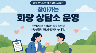 □ 경상북도교육청 화랑교육원(원장 박재진)은 수련생들의 인성교육의 일환으로 정서 안정과 심리 지원을 강화하기 위해 경주 WEE센터와 협력하여 ‘찾아가는 화랑 상담소’를 운영한다고 밝혔다.