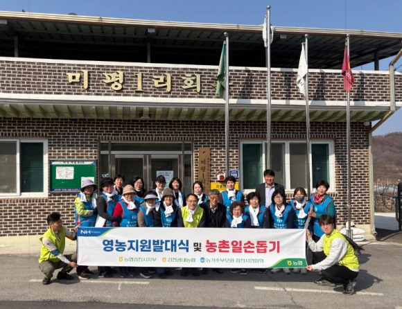 ❍ 농협 김천시지부(지부장 장 문 석)와 (사)농가주부모임 김천시연합회(회장 원 인 순)는 지난 26일 구성면 미평1리 일원에서 본격적인 영농철을 맞아 영농지원 발대식 및 영농폐기물 수거 캠페인 행사를 실시했다.