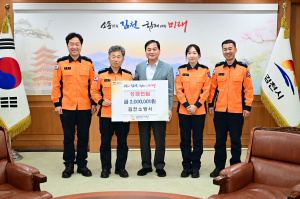 송영환 김천소방서장은 김천시청을 방문해 “이번 기부는 직원들의 땀방울로 이룬 결실을 지역사회와 나누는 것이기에 더욱 뜻깊다”며 “앞으로도 본연의 임무인 시민 안전 수호는 물론, 소외된 이웃을 살피는 따뜻한 소방행정을 지속적으로 펼쳐 나가겠다”고 밝혔다.